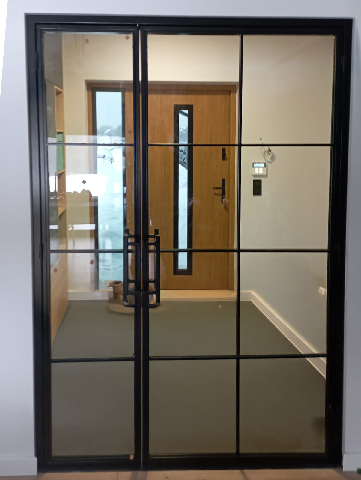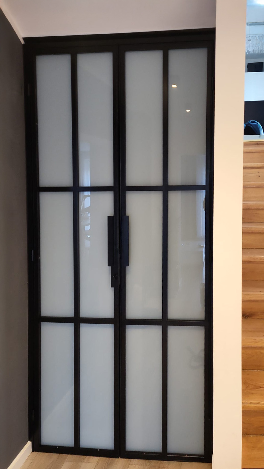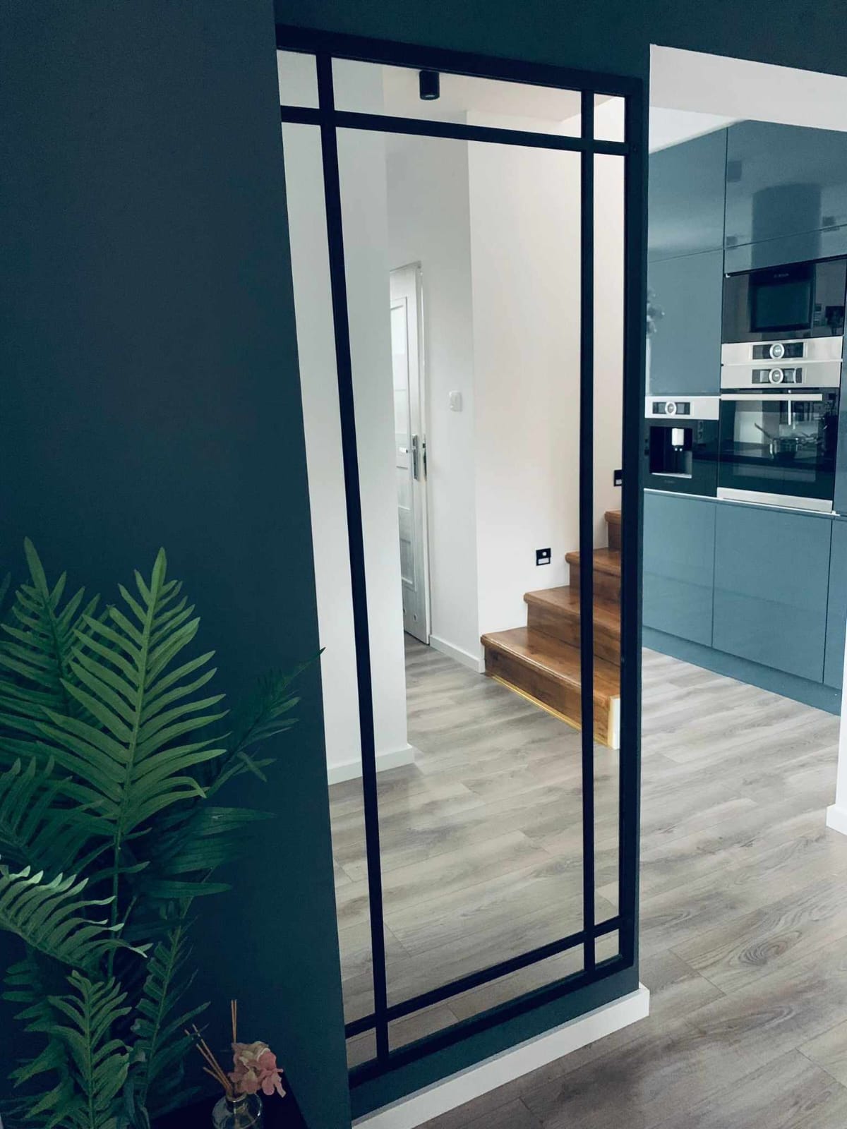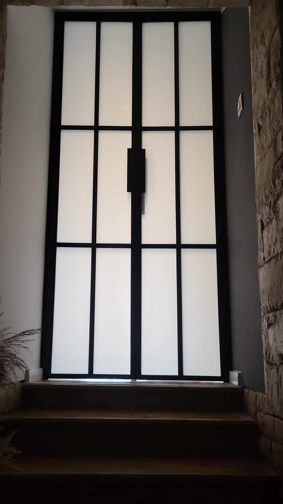 In dieser Galerie präsentieren wir verschiedene Projekte, die den Loftstil in moderner Form widerspiegeln. Jedes dieser Elemente bringt die charakteristische, rohe Eleganz industrieller Designs in den Raum. Zu sehen sind Glastüren mit schwarzen Stahlrahmen, die dem Raum Leichtigkeit verleihen und zugleich durch mattes Glas Privatsphäre schaffen.